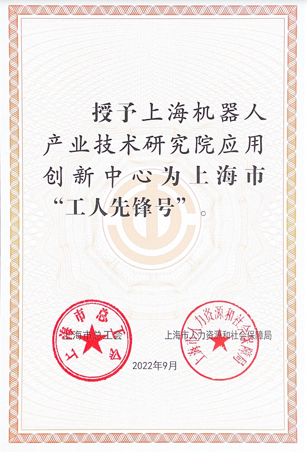 今年3月,上海市总工会已发布2022年上海市五一劳动奖(常规表彰)候选对象公示,经民主推荐,并征求有关部门意见,jiuyou.com九游(中国)机器人有限公司官网应用创新中心荣获2022年上海市“工人先锋号”。