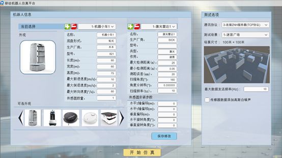 仿真平台既可以从软件上对接机器人的算法逻辑,如建图、路径规划算法等,也可以通过硬件(或仅对接算法主板或芯片)对接实物机器人。通过对机器人各种参数的调整测试,辅助发现算法上的问题,进行算法的正确性和可靠性验证。