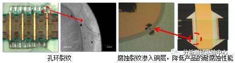 除了影响探针的接触性能外,PTH孔的裂纹缺陷还会导致铜层被腐蚀,降低PCB的耐腐蚀性能,也会给产品的可焊性带来较大的失效风险。